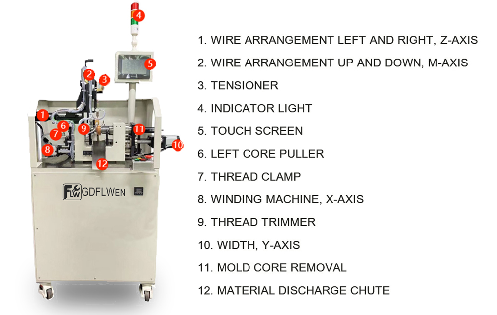 3. Function: Highly efficient, automated winding equipment designed specifically for applications such as micro hollow cup motors and precision inductor coils. It is particularly suitable for high-volume processing of thin-wire, high-turn count, and high-precision hollow coils.