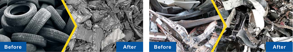 1. It can meet the needs of waste recycling in various solid waste industries and is suitable for shredding thick, difficult-to-crush, or large, hollow materials. Examples include used household appliances, rubber tires, large blue barrels, and used cars.